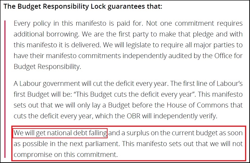 Labour Party General Election Manifesto 2015 - Budget Responsibility Lock - Debt and Deficit Confusion