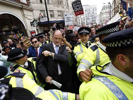 And so another supposedly peaceful left-wing anti-austerity protest (this one timed to coincide with the Queen’s Speech) ended with the now-familiar scenes of an beleaguered right-wing politician being escorted to safety by police with baying mobs of young protesters in pursuit, chanting “Tory scum!” and “racist scum!”.